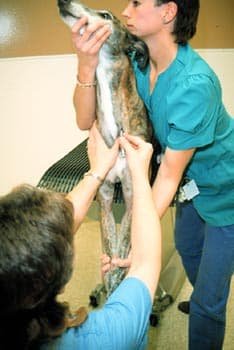 La contention  est très importante et doit être faite par des personnes formées (ASV  ou propriétaire averti).