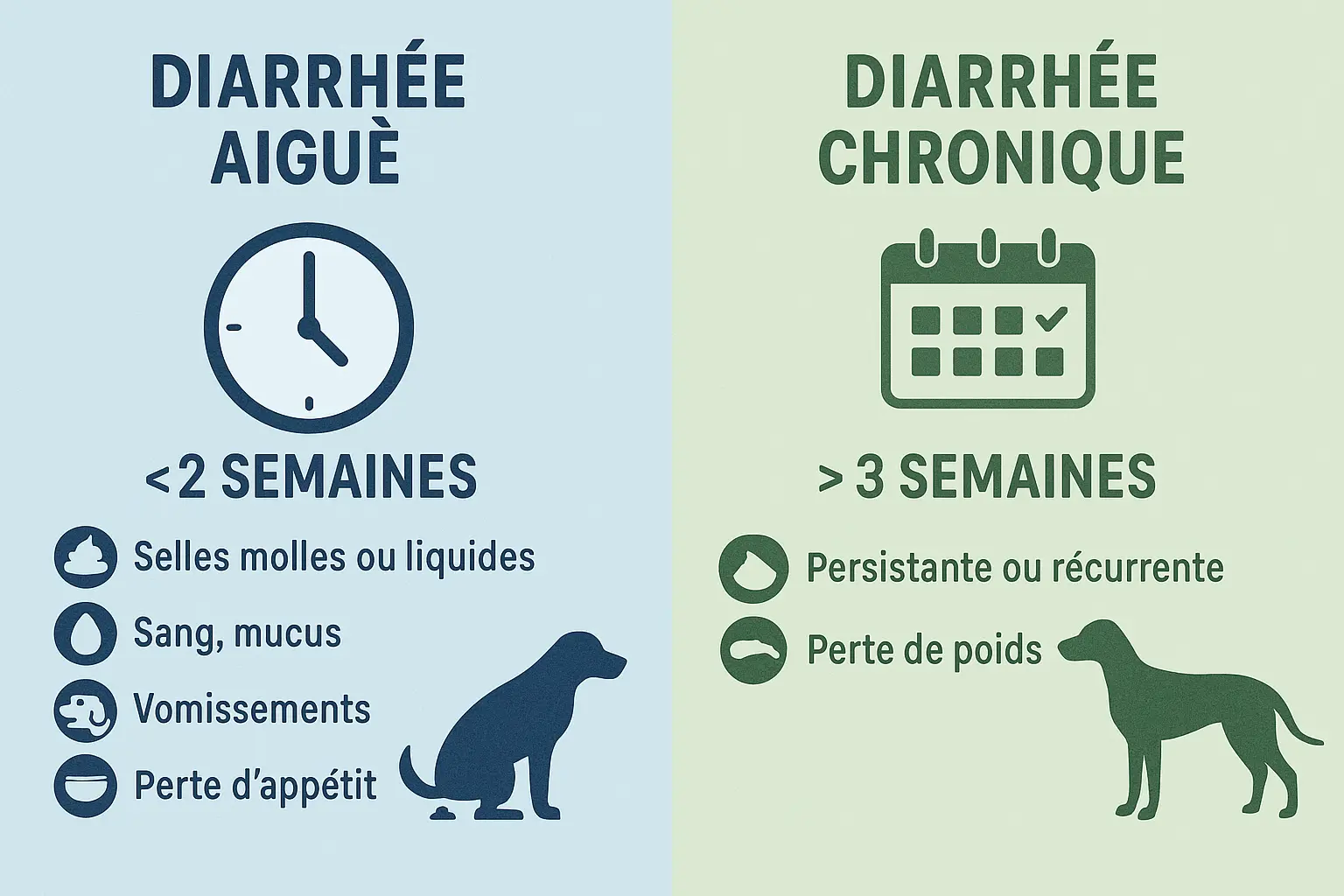 Contrairement aux diarrhées aiguës, facilement identifiables et généralement liées à des causes évidentes (changement alimentaire brutal, ingestion de corps étrangers), les formes chroniques présentent un défi diagnostique majeur. Elles résistent aux traitements symptomatiques classiques et nécessitent une investigation approfondie pour identifier leur origine véritable.