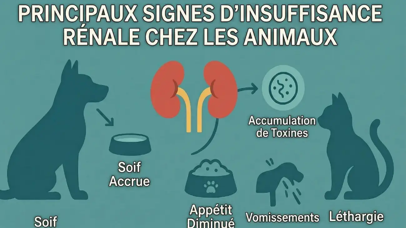 Les signes d’alerte incluent une soif excessive (polydipsie), une miction augmentée ou diminuée (polyurie/oligurie), vomissements, léthargie, perte d’appétit, et faiblesse