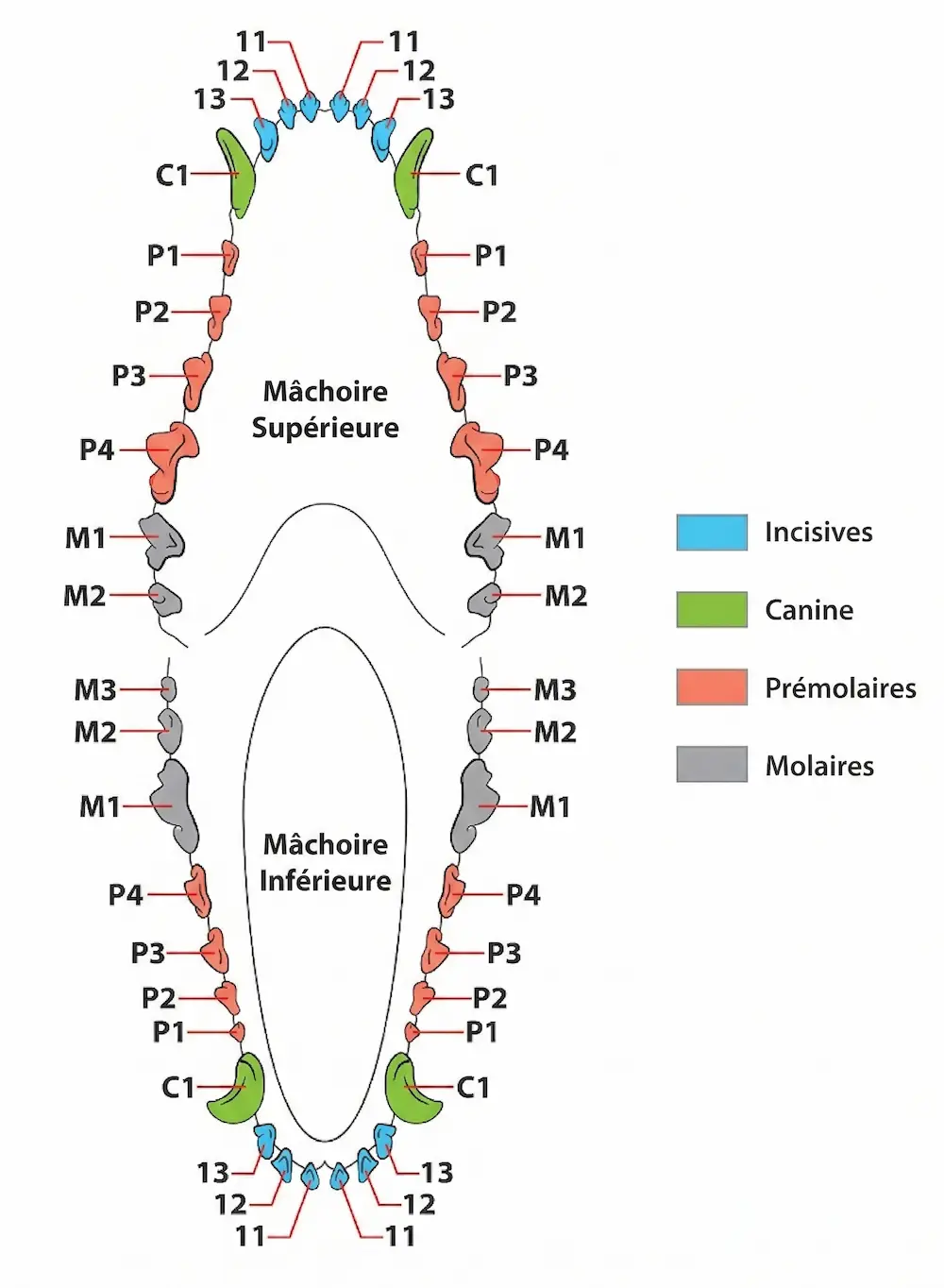 Le chiot va avoir 28 dents de lait qu’il va perdre progressivement au détriment des dents adultes ( vers l’âge de 6-7 mois) pour avoir sa dentition définitive ( 42 dents )