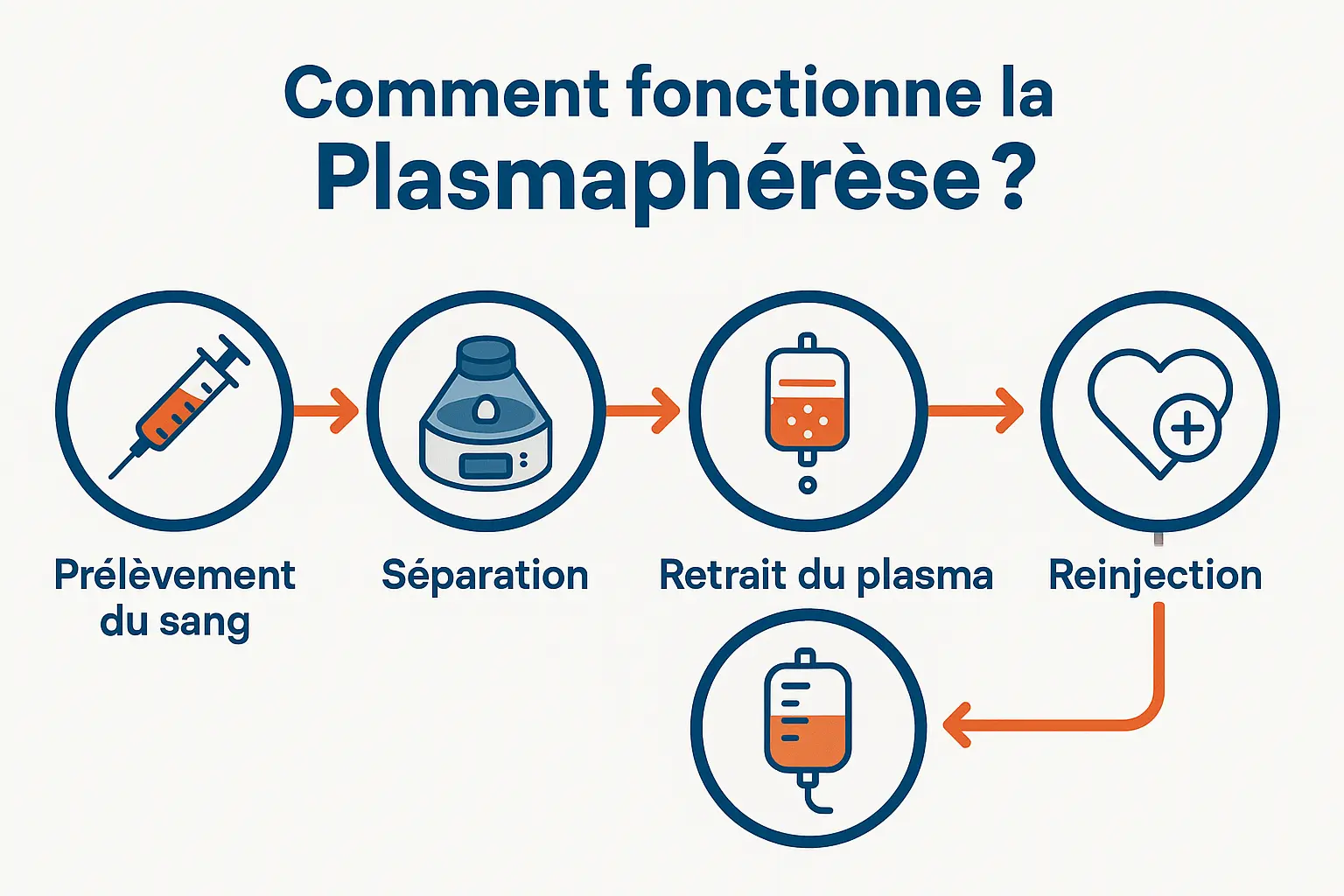 - Réinjection des cellules sanguines avec le nouveau plasma
