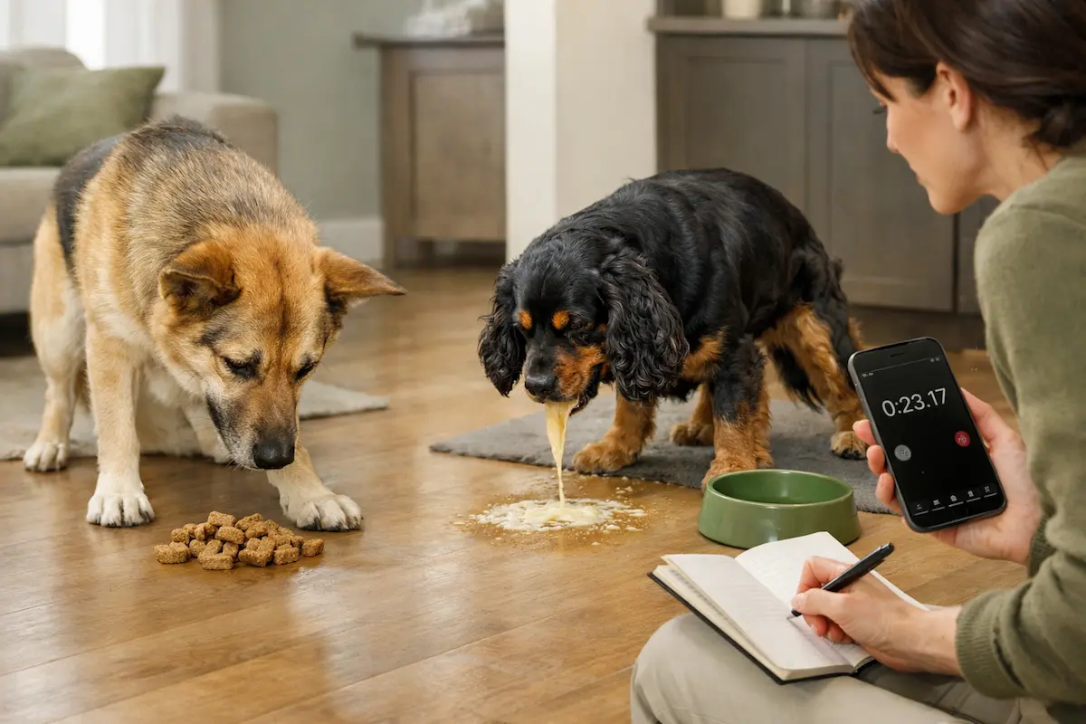 Erreur fréquente : beaucoup de propriétaires disent “il vomit”, alors que le chien régurgite. Ce n’est pas un détail. Une régurgitation répétée peut indiquer un trouble œsophagien comme le mégaœsophage, qui mérite un examen ciblé.